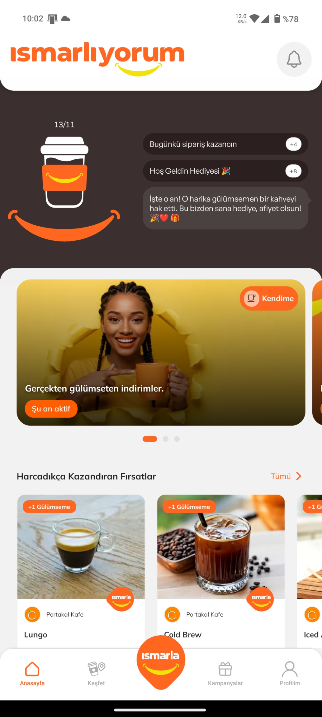 Saniyeler içinde üye ol, arkadaşlarına sürpriz jestler yapmaya başla. Her siparişte 'Gülümseme' biriktir ve bedava kahveni hemen al.